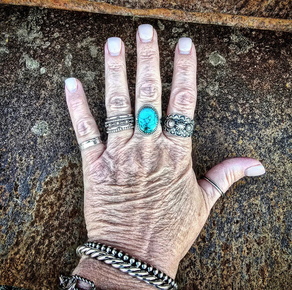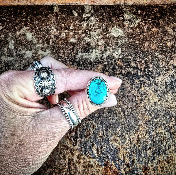 - 1 sterling silver ring with genuine turquoise, other products pictured are sold separate.