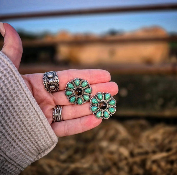 A jewelry fit that is - and lets be real . . these turquoise and gemstone concho stud earrings are totally worth a scene! Talk about the perfect size, they are absolutely gorgeous and have all the details to make a statement in all the right ways! This turquoise and brown color combo does all the talking and is the perfect finishing touch for any occasion from a daily statement to a night on the town!