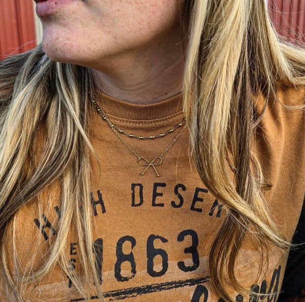 We have been obsessed with a little gold and silver mix so had to bring in some of the cutest combo worthy necklaces and let me tell you . . . this one is just tooo cute! Absolutely in love with this dainty bow - it is the perfect touch! The size is just right for a wear alone, or of course a great layer piece as well! Since it goes with literally everything, this will definitely be a wear on repeat!